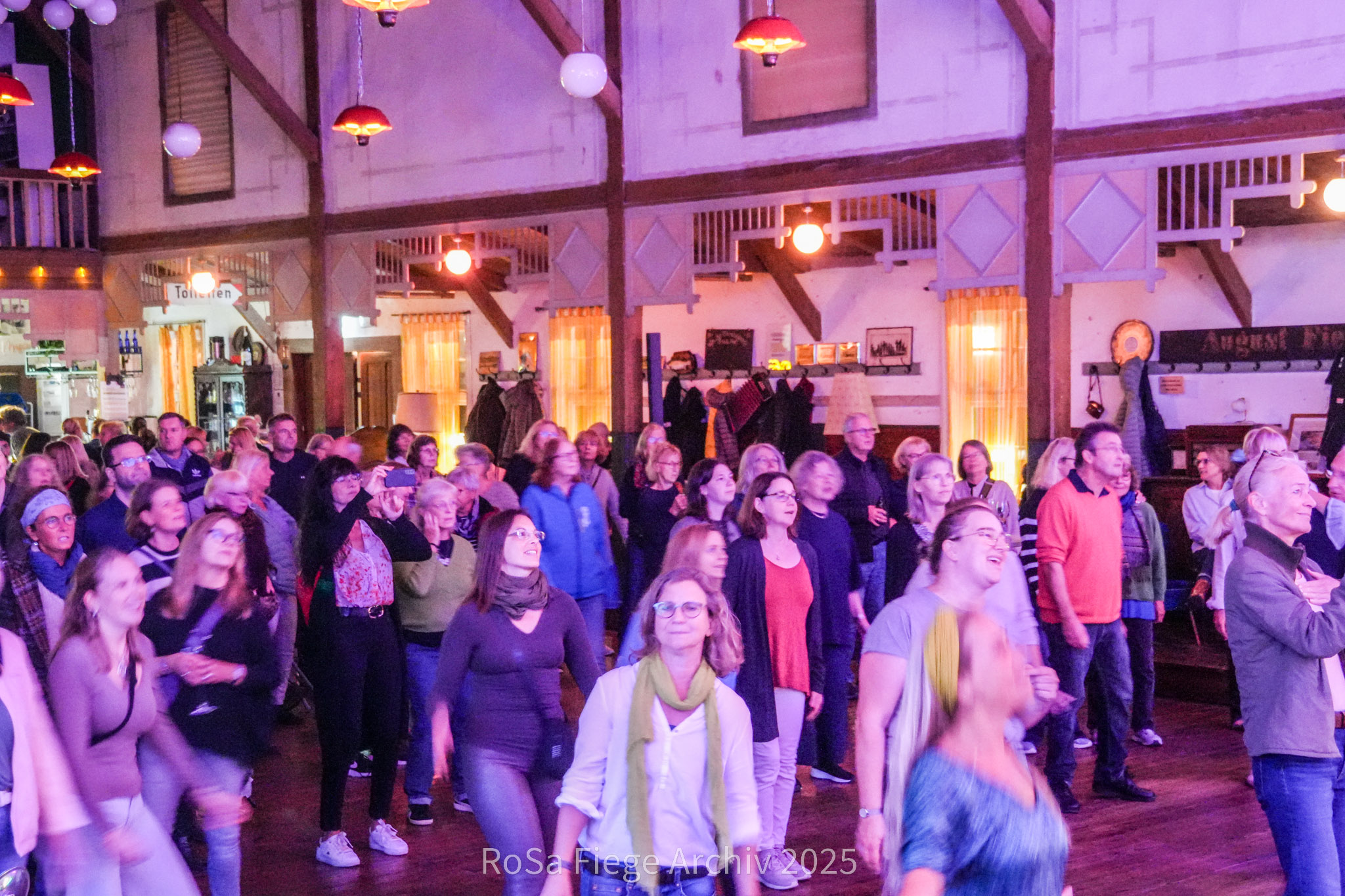 Inzwischen ist es wissenschaftlich belegt: Singen und Tanzen sind gesund, machen glücklich und verlängern das Leben. Ganz in diesem Sinne luden die vier DänSing-Ladys am 2. Oktober 2025 um 19 Uhr zum großen Saisonfinale in den Rosdorfer Saal von RoSa Fiege e. V. ein – und sorgten dort für einen rundum beschwingten Abend.